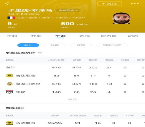 2023年夏窗,本泽马自由身从皇马加盟吉达联合,据悉年薪1亿欧,本赛季他为球队出战21场比赛,打进16球。